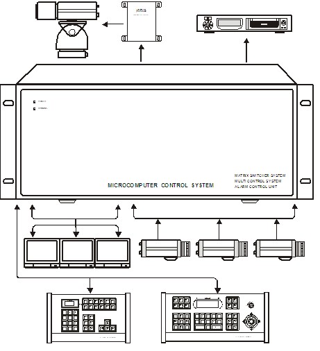 矩陣主機通過控制碼轉換器可直接控制ROBOT、SENSORMATIC等多畫面分割錄像處理器。
